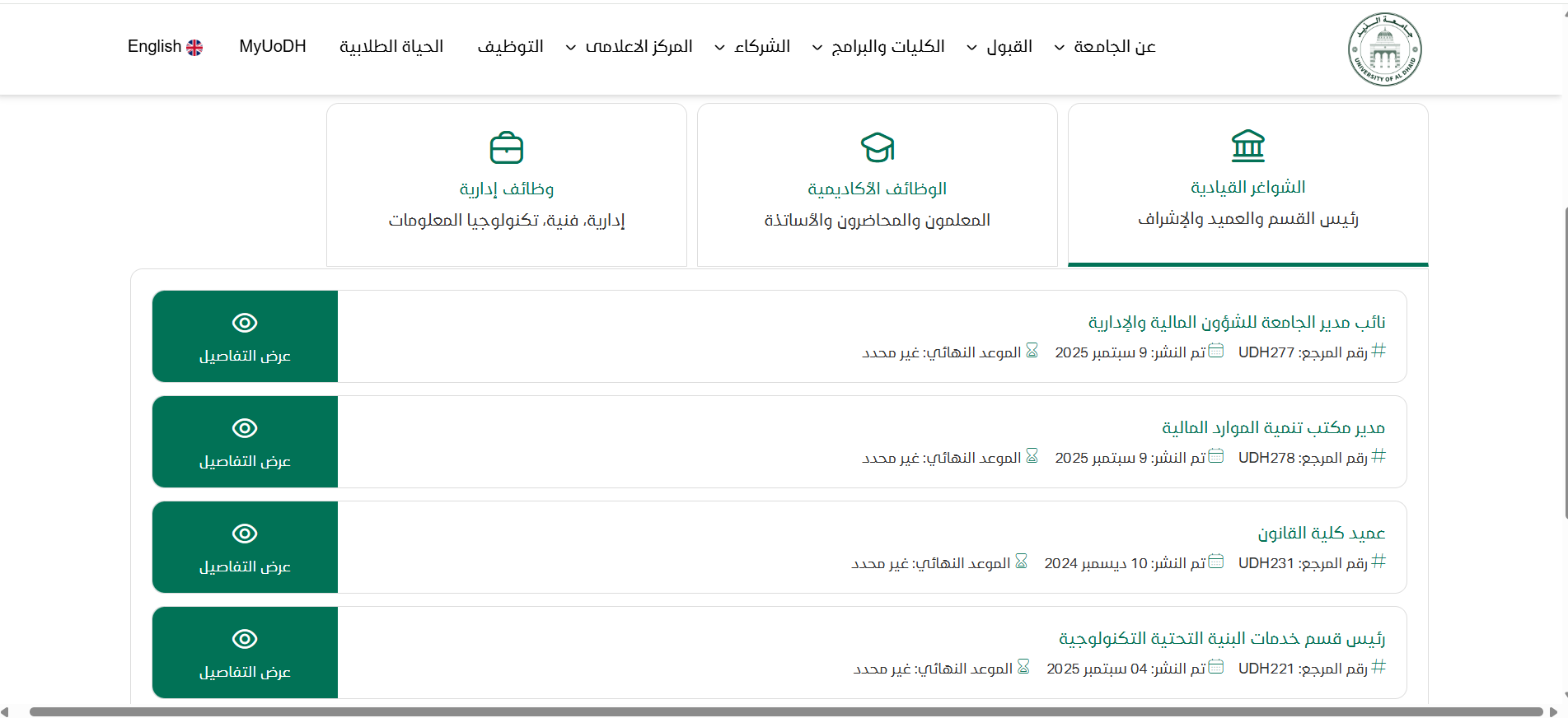 - التزام بالتميز في التدريس والبحث وخدمة المجتمع، ومهارات تنظيمية عالية (تُمنح الأولوية لمواطني الإمارات).